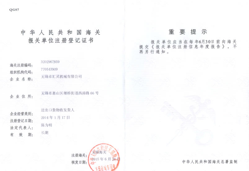 无锡市汇灵机械有限公司Wuxi Huiling Machinery Co., Ltd